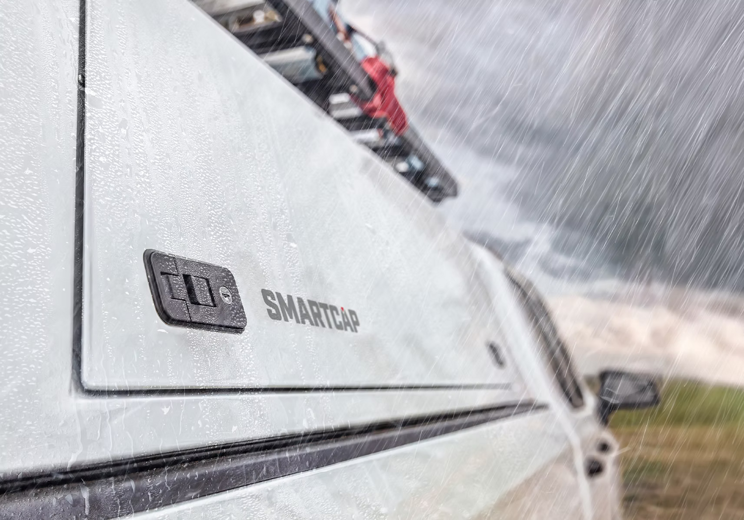 La conception en 5 pièces intègre un système d'étanchéité innovant qui, une fois installé, rend le SmartCap parfaitement résistant aux intempéries. Lorsque Mère Nature se déchaîne avec des pluies torrentielles ou des tempêtes, votre chargement restera parfaitement au sec, quelles que soient les conditions.