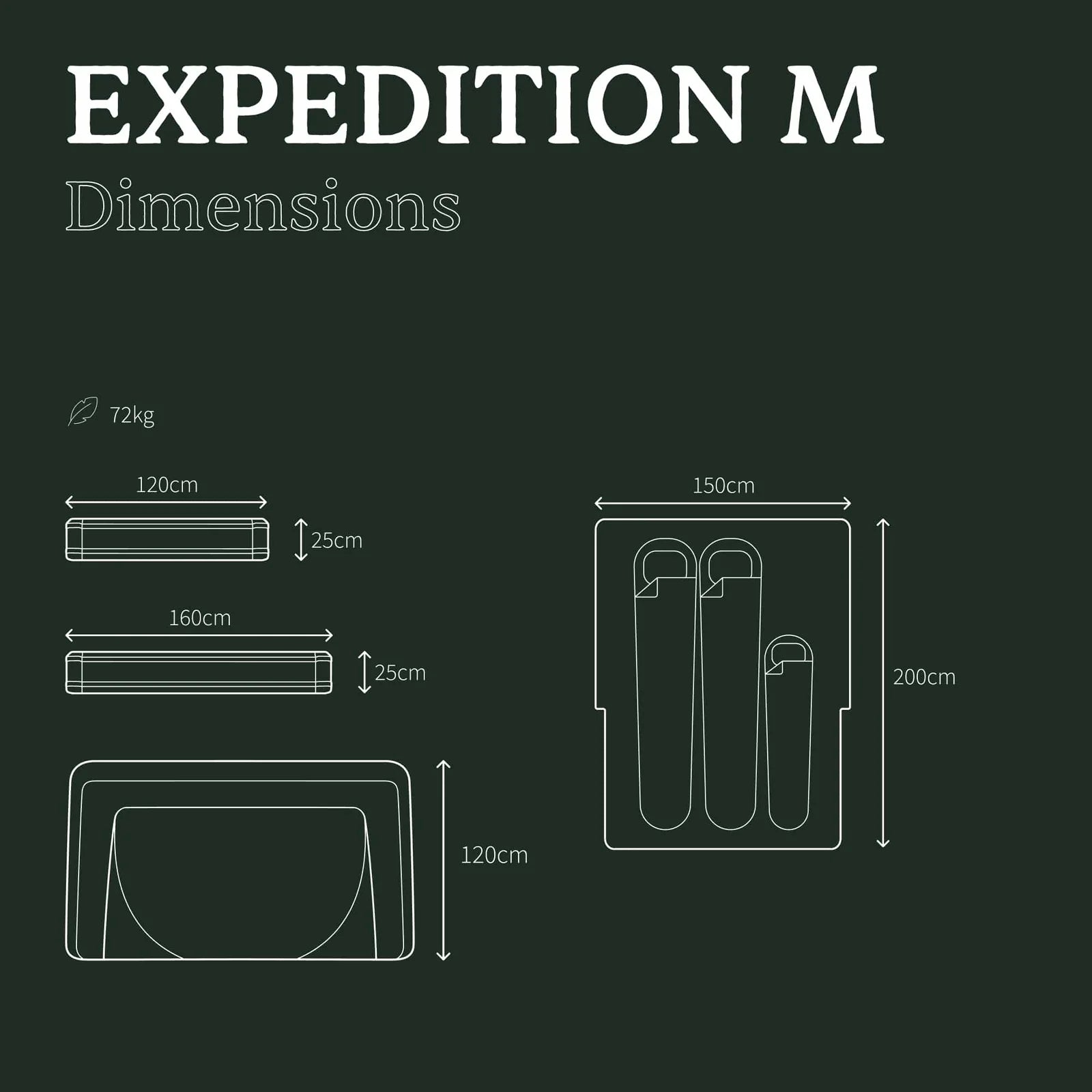 La spedizione M include un tappetino anticondensa, isolamento termico completo, quattro finestre panoramiche e ampio spazio interno per organizzare la tua attrezzatura.